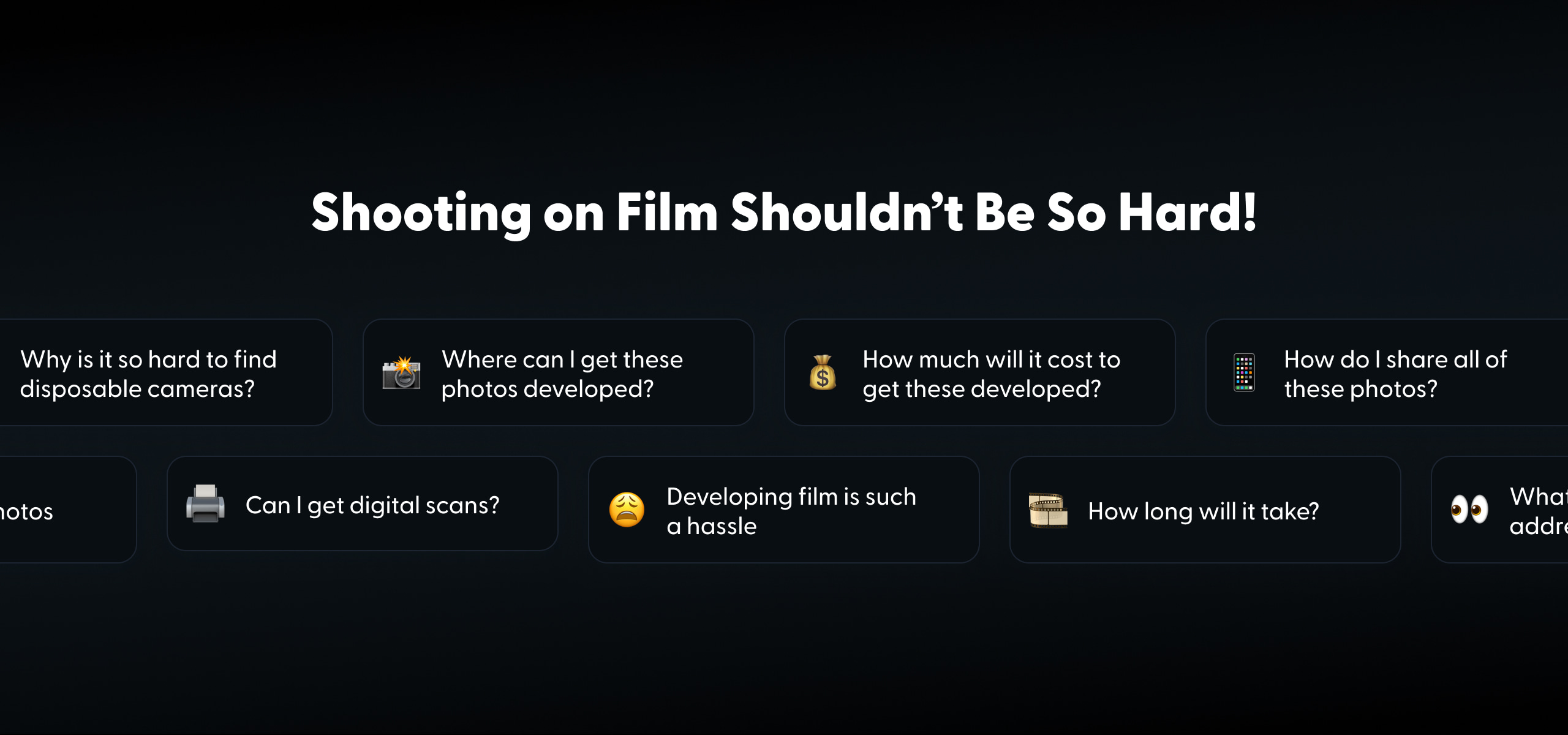 I am especially proud of this product because it reinforced the value of UI/UX design. By being creative, I was able to find new ways for Strap to add value to their product by utilizing data that they already had. Using a disposable camera that was no different than any others, we were able to create a truly memorable experience. By empathizing with user needs and staying true to Strap’s mission, we created a product that perfectly aligns with Strap's mission “Because Moments Matter.”